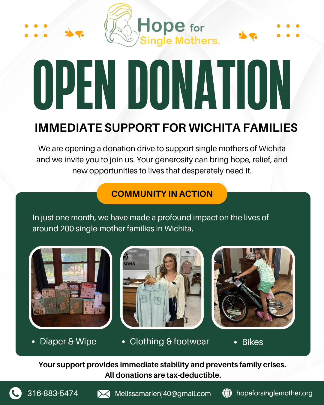 Single moms of Wichita has been there for my son and me twice now. I feel so blessed in my struggle. I give my graditute and thanks to them for helping all of us moms in need. Much love and respect for everything that you do❤️💯🥰